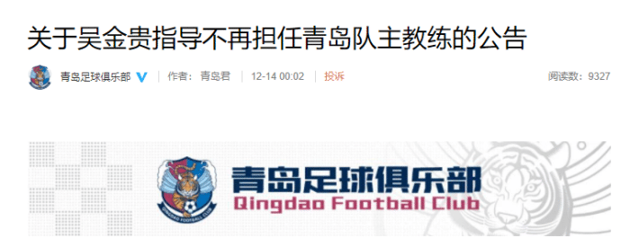 来源:24直播网12-14 11:3724直播网12月14日讯 今天凌晨,青岛队发布公告,证实吴金贵不再担任球队主教练,杨为健暂代教练一职。