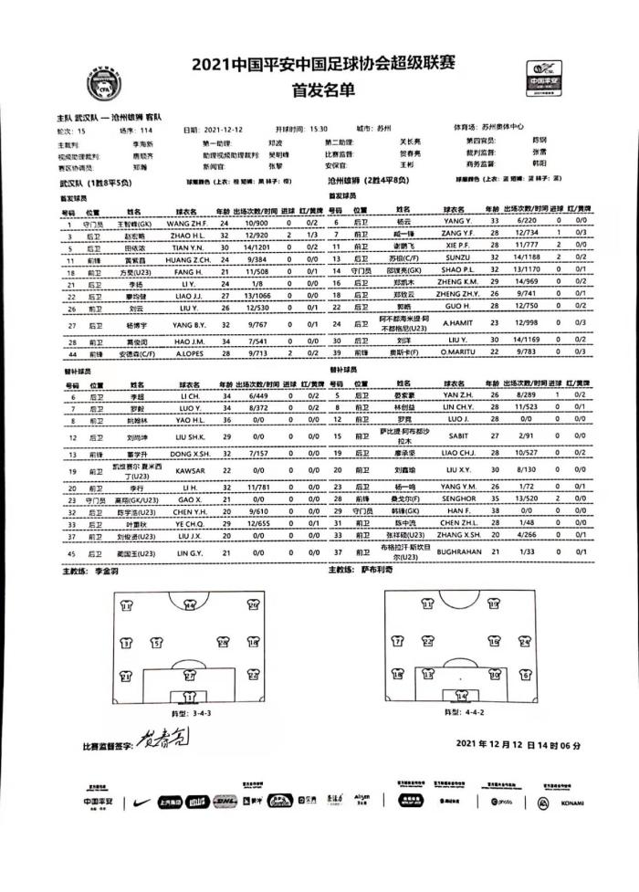 来源:24直播网12-12 16:4424直播网12月12日讯 ,中超联赛保级组的比赛正式展开争夺,武汉队对阵沧州雄狮。本场比赛的首发出炉。
