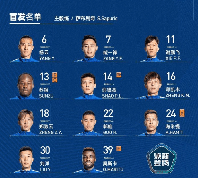 武汉对阵沧州首发,蒿俊闵领衔,李金羽执教首秀,安德森对奥斯卡