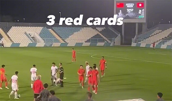 那么说国足是否真的发挥出“少林足球”?三张红牌的来源,第一张是王上源对裁判出言不逊,第二张是国足的助教不满被驱逐,第三张是吴少聪危险动作伤及中国香港球员头部。一场比赛这么多人被罚下,确实难怪被对手吐槽,太扎心了。