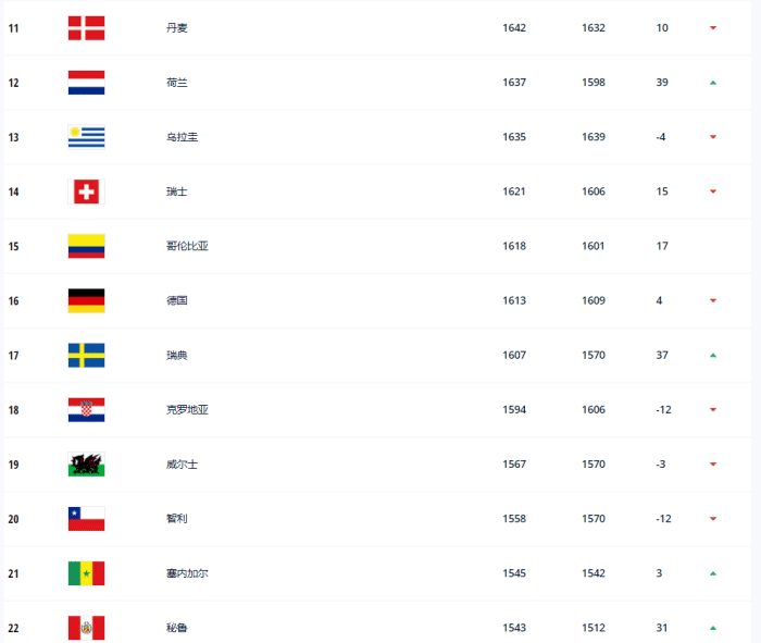 FIFA更新国家队排名:比利时仍排名榜首,国足上升6位!