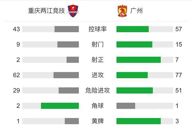 全场比赛结束,广州队5-1击败重庆两江竞技,取得三连胜。