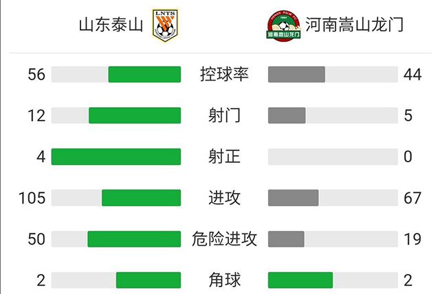全场比赛结束,山东泰山2-0河南嵩山龙门。