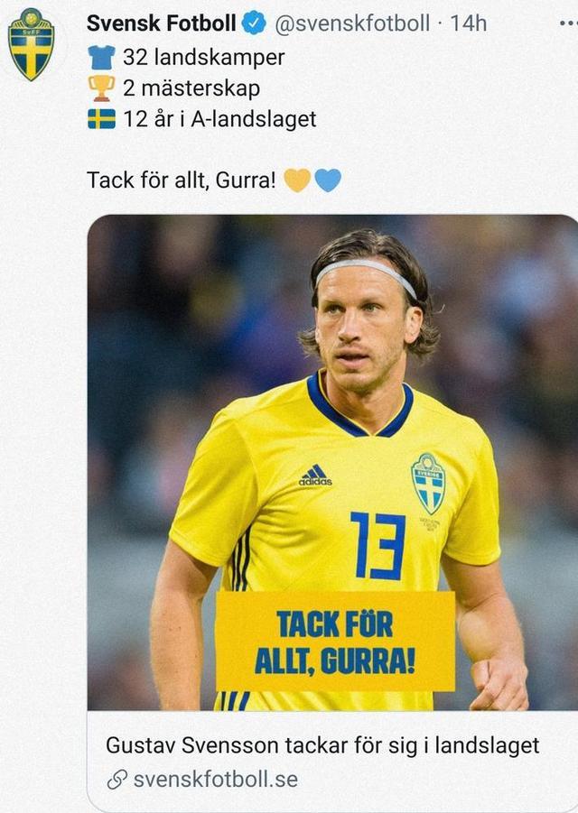 斯文森说:“能够代表瑞典队是一种不可思议的荣誉,我很感激能有这样的机会结交那么多朋友,我要向所有人表示由衷的感谢。”
