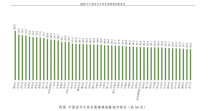 中国省市足球发展健康指数城市排名:梅州市第一