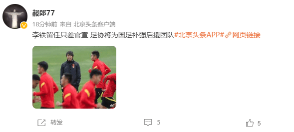 来源:24直播网06-22 11:0324直播网讯 昨日21日北京头条记者获悉,中国足协对于李铁的执教能力给予充分肯定,因此他执教国足的合同自动延续也已经板上钉钉。