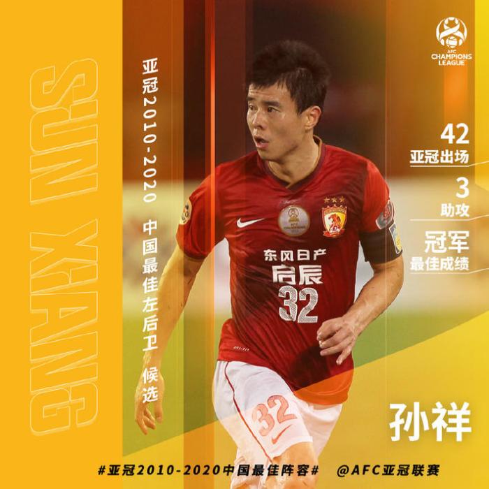 亚冠近十年中国最佳左后卫:孙祥、李学鹏及王燊超
