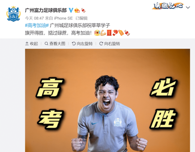 6月8日早晨,高考学子整装待发,为自己的人生开始重要一次考试。广州城第一时间为考生送祝福,在社交账号上发布海报并且贴文:“旗开得胜,掂过碌蔗,高考加油!”值得一提就是,这一次广东高考作为是关于“体育之效”的题目。并且引用了“生而强者不必自喜也,生而弱者不必自悲也”的名人名言。作为中国体育强省,广东高考出这么一道题,肯定让本地的考生们笑不拢嘴。