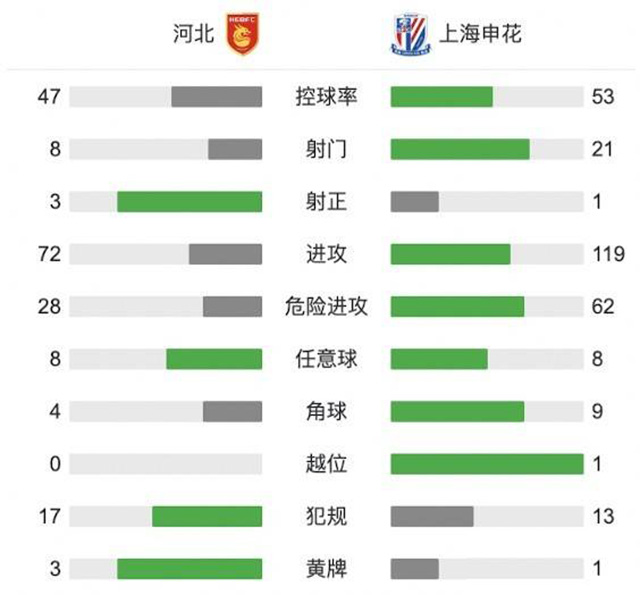 上海申花1-1河北 格林伍德破门卡瓦尼建功