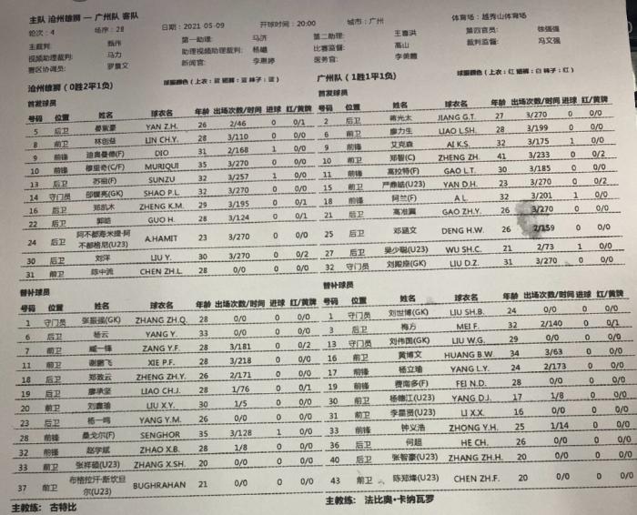 来源:24直播网05-09 19:2824直播网讯 北京时间5月9日,中超联赛继续进行,广州队对阵沧州雄狮,本场比赛卡纳瓦罗要带队冲击两连胜,本场比赛的首发名单公布。
