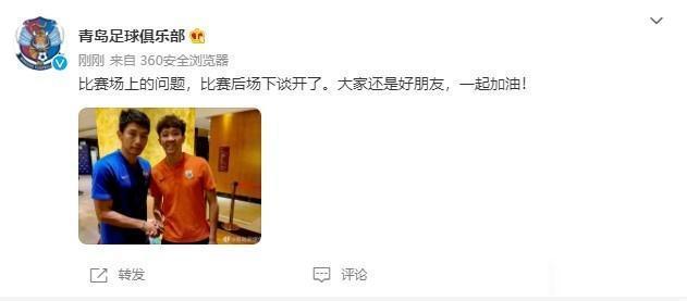 官微写道:“比赛场上的问题,比赛后场下谈开了。大家还是好朋友,一起加油!”