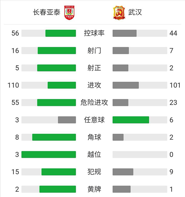 全场比赛结束,长春亚泰0-0闷平武汉队。