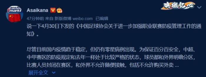 说一下4月30日下发的《中国足球协会关于进一步加强职业联赛防疫管理工作的通知》。