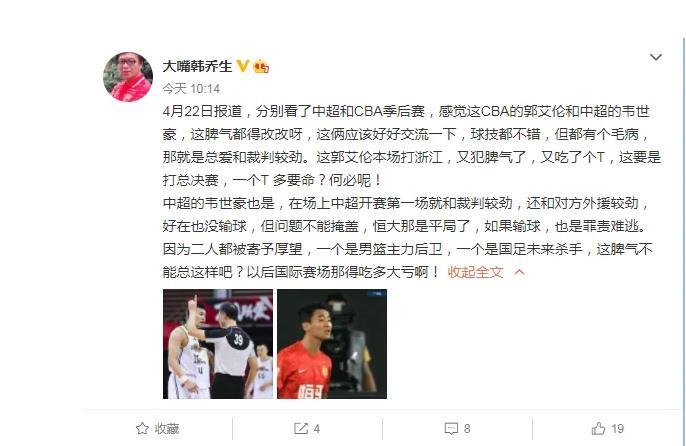 如今的韦世豪球场上的表现咱先不说,但是在球场上和辽宁男篮的郭艾伦几乎是有一拼的,甭管是对手犯规还是自己犯规,韦世豪和会和裁判和对手吐槽、申诉一通,4月21日,辽宁男篮对阵浙江男篮半决赛G2,郭艾伦就直接被主教练杨鸣怒斥打的和小孩子一样。而在广州男足的揭幕战中,韦世豪也遭遇了类似的一幕。
