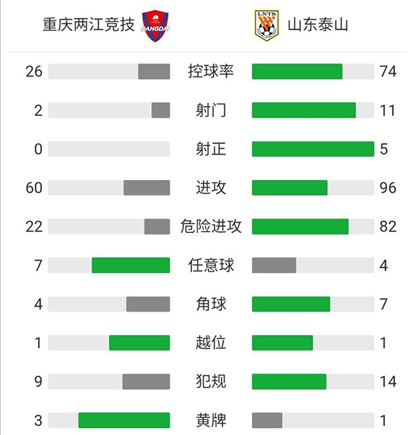 全场比赛结束,山东泰山2-0战胜重庆两江竞技!