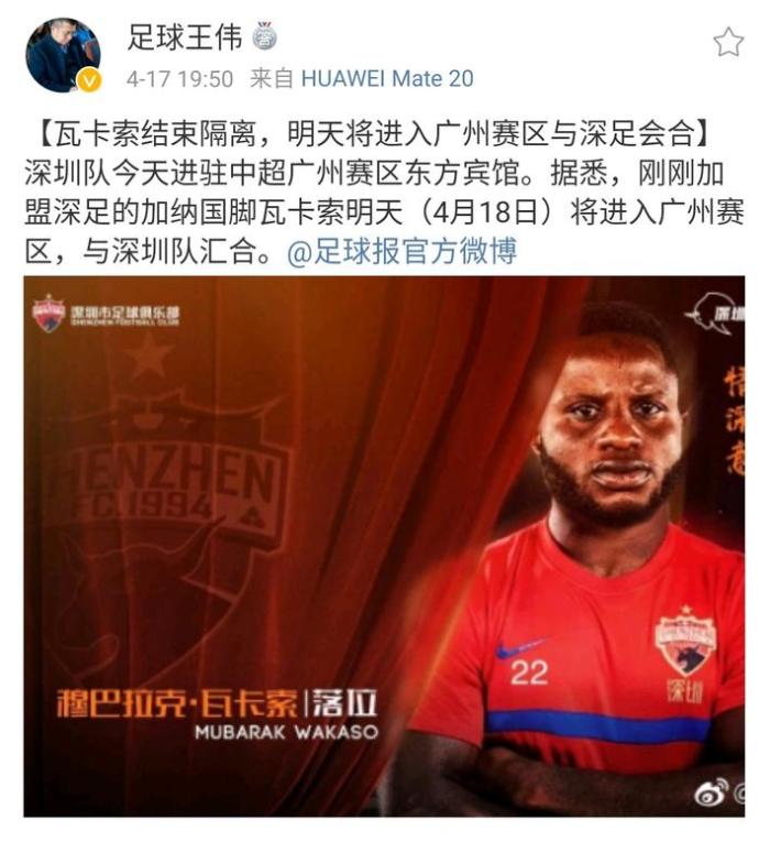 记者: 瓦卡索结束隔离, 明天将进入广州赛区