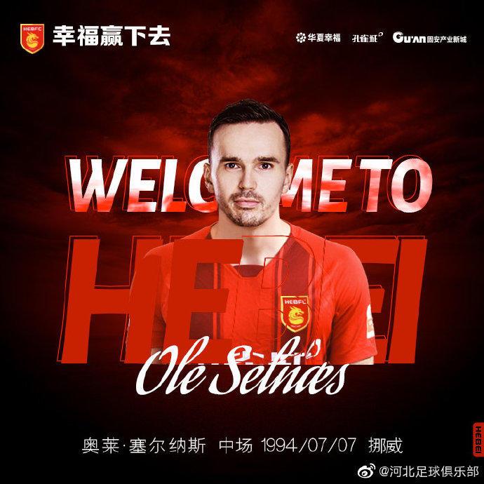 经与球员本人协商达成一致,即日起,奥莱·塞尔纳斯 (Ole Selnæs)正式加盟河北足球俱乐部。