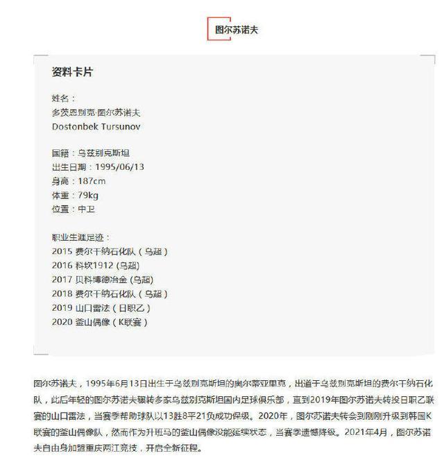 2021赛季,希望图尔苏诺夫能够尽快适应,状态加满,与队友一同在新赛季中帮助重庆两江竞技更上层楼。