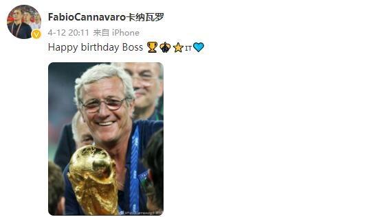 爱徒! 卡纳瓦罗发微博祝里皮73岁生日快乐