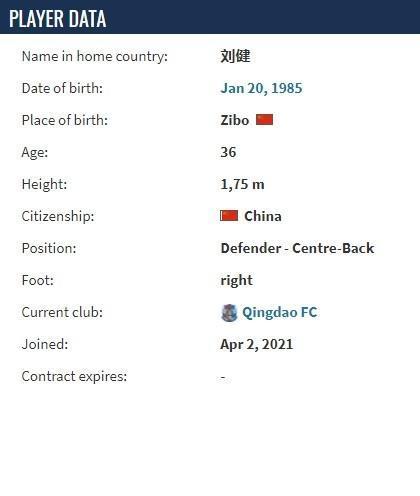 队长归来!德转:刘健以自由身身份加盟青岛队