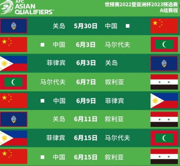 24直播网讯 北京时间4月1日,根据亚足联官方消息,预选赛第二阶段剩余比赛日期已经确定,中国队所在A组的比赛将在苏州举行。国足将于5月30日率先迎战关岛,6月15日对阵叙利亚。