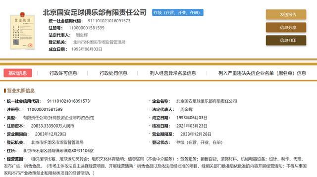 根据国家企业信息查询系统显示,北京中赫国安俱乐部更名为北京国安足球俱乐部。