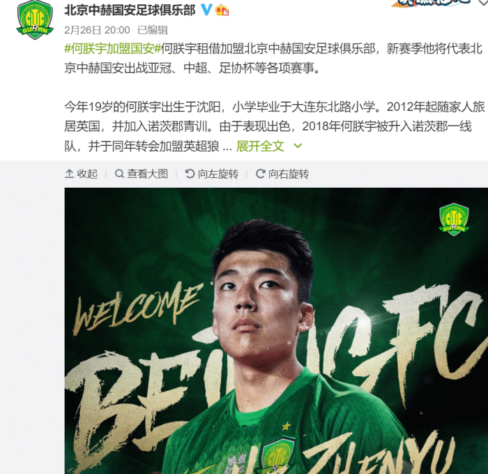 来源:24直播网03-04 21:4324直播网3月4日讯 随着中超联赛进入至暗时刻,江苏苏宁和天津泰达已经“收拾行李”准备离开,作为中超“八冠王”的广州恒大也不敢吭声。万万没想到的就是,有一家俱乐部避其锋芒,不仅未改“中性化”队名还连续引进三名球员。北京国安在官宣曹永竞与高天意两位年轻球员之后,还将狼队海归球员何朕宇招致麾下。值得一提的就是,何朕宇最爱吃西餐,还与上赛季表现出色的戴伟浚曾经同袍。