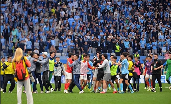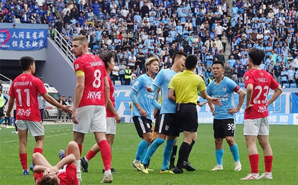 3天前的中甲第9轮,广州队在客场1-0力挫领头羊大连英博,由于大连英博被罚下1人,这让主队十分不满,双方在比赛中频繁冲突造成主裁多次出示黄牌警告。而比赛结束后,广州队门将霍深坪,因为向球场三个方向鞠躬,这一行为也引发了大连英博球员不满,王选宏上前将其发生争执,直接导致两队大规模冲突。
