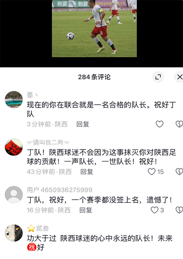 还有前陕西球员丁捷,令外界感到意外,值得一提的是,丁捷在9月7日代表陕西联合出战了与广西恒宸的中乙联赛,没想到3天之后,他被终身禁足,等于直接宣布退役。不少陕西的球迷在社交媒体上发文和留言,声援丁捷,认为他功大于过,还给丁捷送上祝福。