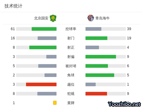 第18分钟,李磊中场送出长传,法比奥高高跃起头球摆渡,曹永竞插上左脚推射得手,北京国安1-0青岛海牛!