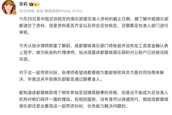 因为张岩没有在工资确认表签字,成都蓉城能否通过新赛季联赛准入,陡增疑问。尽管成都蓉城取得了参加新赛季亚冠精英联赛的资格,但这显然不能成为足协准入机构对他们网开一面的理由。