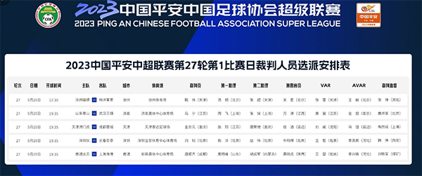 其余比赛,唐顺齐执法南通支云和上海海港的比赛,艾堃担任视频裁判。甄伟执法沧州雄狮和梅州客家的对决,张雷是视频裁判。金京元执法天津津门虎和成都蓉城的对决,视频裁判是刘威。刘钊执法深圳和亚泰的比赛,王哲是视频裁判。