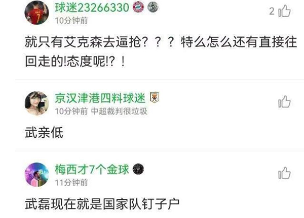 第二个画面来自于艾克森。在武磊丢球后,艾克森是冲刺的逼抢,艾克森知道如果能够趁乱逼抢下来,或者制造对方传球失误就可以避免被对手快速反击,可是当艾克森全速冲刺逼抢的时候,艾克森的队友却开始了散步式的后撤,场面上来看,国足是一点默契都没有,这也让艾克森的逼抢变成了尴尬的存在,效果上也是毫无成效。看到场上的情况,很多球迷也是对于男足球员的斗志进行了怒骂。