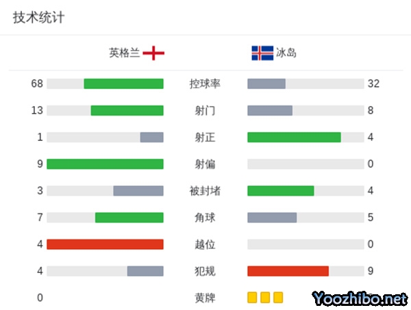 英格兰0-1冰岛 凯恩&帕尔默屡失良机英格兰全场仅1射正