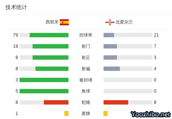 第2分钟,北爱尔兰利用定位球机会由巴拉德闪击破门,西班牙0-1落后。