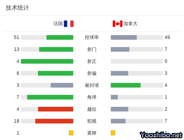 最终,法国0-0战平加拿大,热身赛1胜1平。