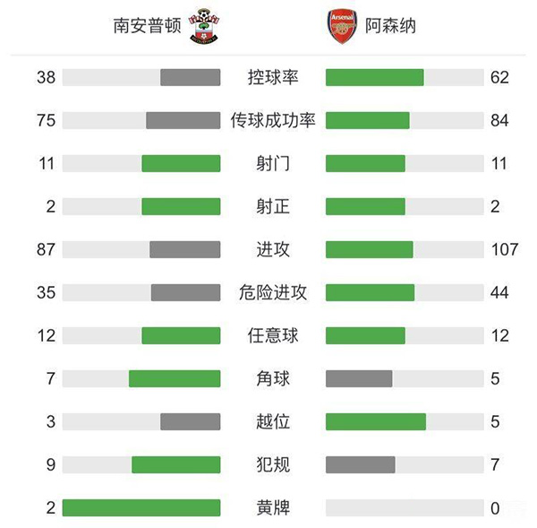 阿森纳首发:1-莱诺、2-贝莱林(72'9-拉卡泽特)、16-霍尔丁、6-加布里埃尔、17-塞德里克-苏亚雷斯、25-埃尔内尼(58'18-托马斯-帕尔特伊)、34-扎卡、19-尼古拉-佩佩、12-威廉、35-马丁内利(58'7-萨卡)、30-恩凯蒂亚