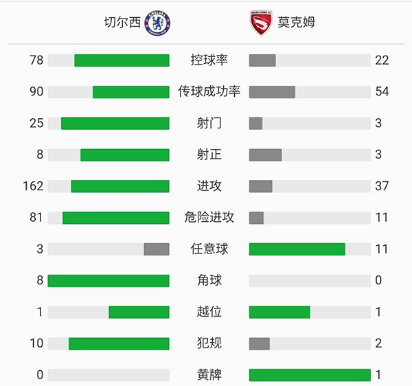 第85分钟蓝军再次破门,阿兹皮利奎塔右路传中,哈弗茨中路前插力压防守头球破门,4-0,切尔西领先!