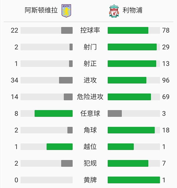 第40分钟,维拉扳平比分,罗维后场送出精妙直塞球,巴里抗住里斯-威廉姆斯快速前插形成单刀球推射远角入网,阿斯顿维拉1-1利物浦。
